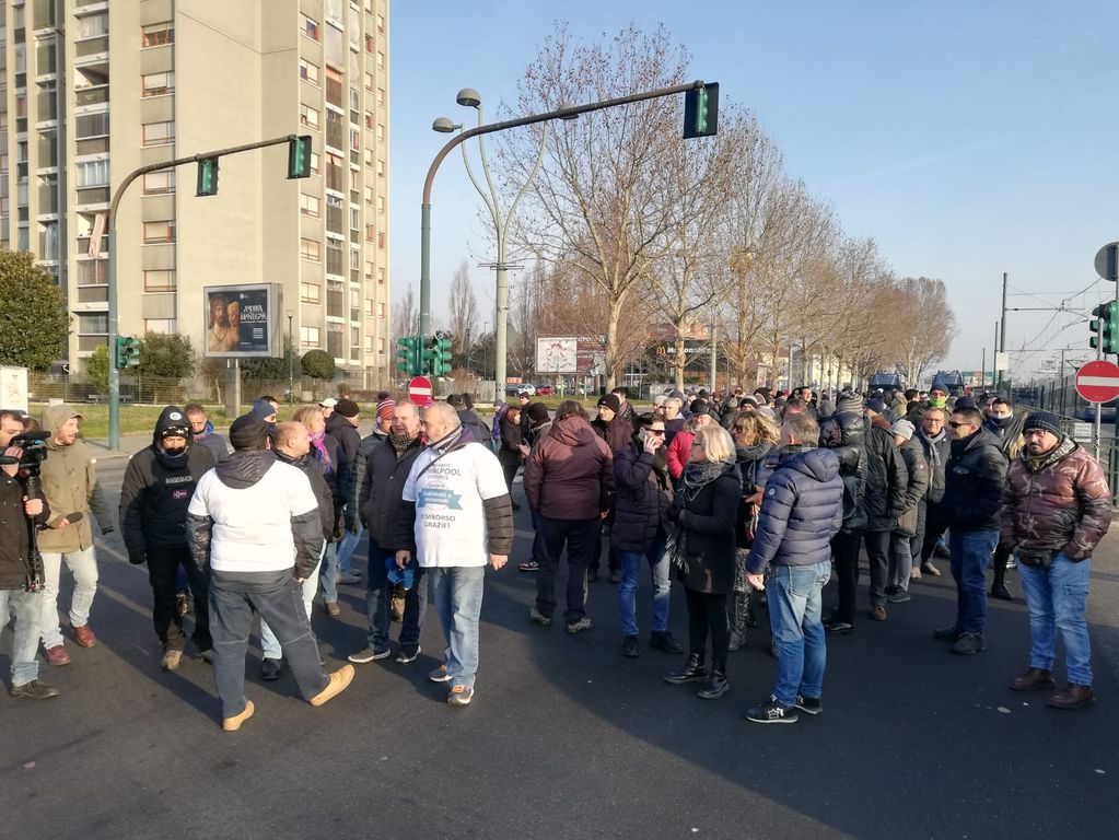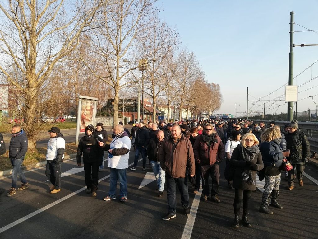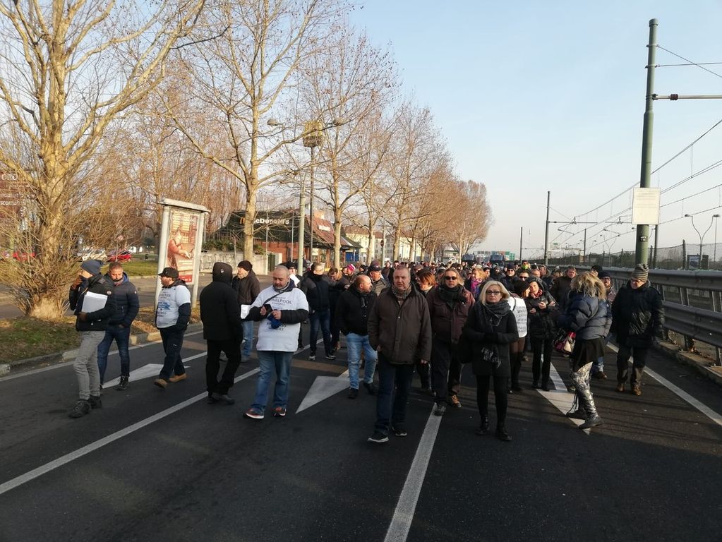 La manifestazione si è tenuta in corso Giulio Cesare, poco distante dall'Auchan. Non sono state pagati gli stipendi di dicembre e le tredicesime