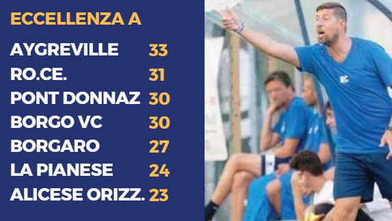 Aygreville 33, RomentineseCerano 31, Pont Donnaz 30, BorgoVercelli 30! Le inseguitrici guadagnano terreno, le battistrada perdono entrambe: secco ko dell'Aygreville sul campo del Trino (3-0, due gol di Erbini e Bissacco) e passo falso della Ro.Ce in casa Alicese (1-0, eurogol di Amato).