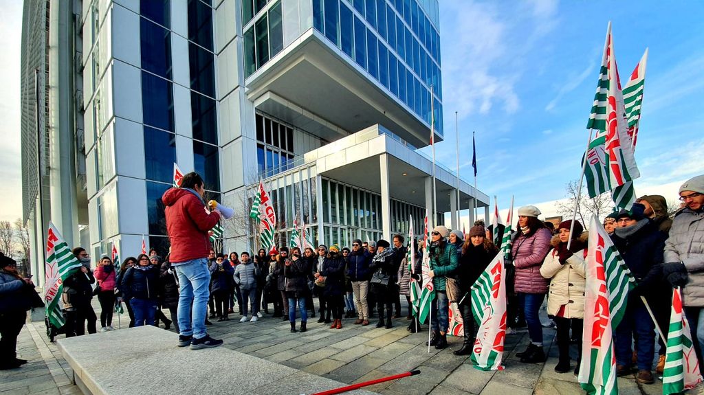 Stanno scioperando davanti al grattacielo di Intesa San Paolo di Torino, i lavoratori di Olisistem Start, l'azienda di Settimo Torinese, che ormai da mesi hanno dichiarato lo stato di agitazione.
