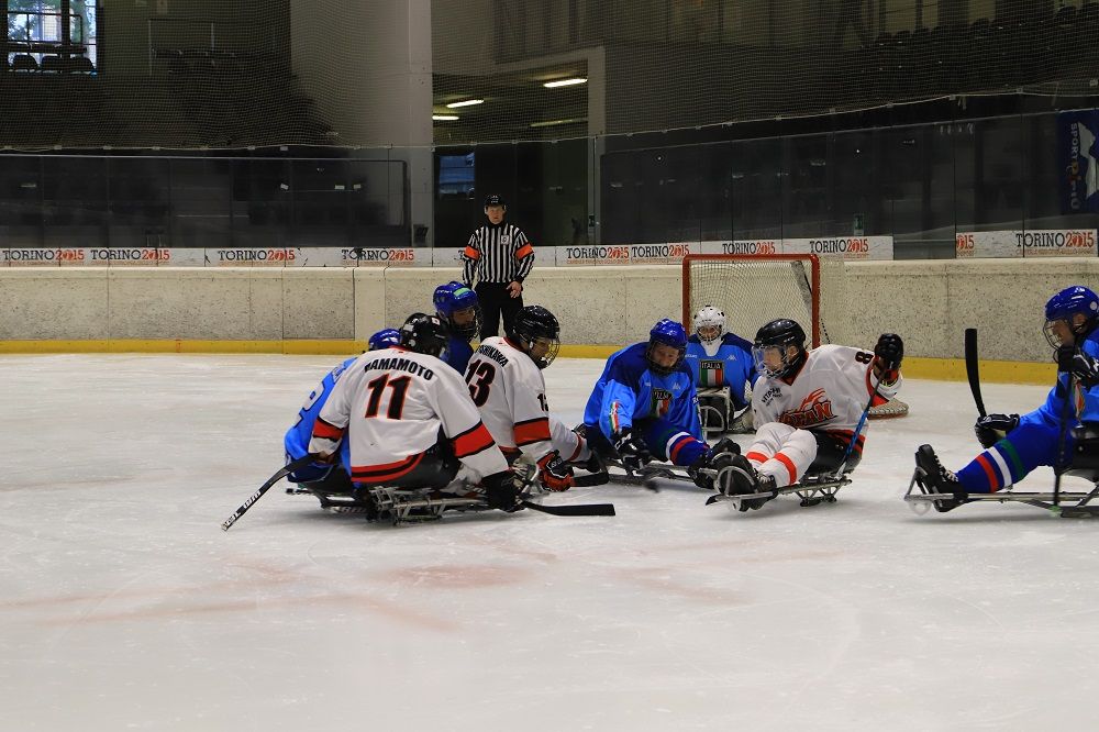 I ragazzi di coach Massimo Da Rin sono stati trascinati alla vittoria per 5-3 dai difensori: nel primo periodo, dopo l'immediato vantaggio giapponese ad opera di Mamoru Yoshikawa, è stato infatti Andrea Macrì (giocatore dei Tori Seduti di Sportdipiù) a siglare il pareggio. La stessa situazione si è ripresentata anche nella ripresa: ancora gol di Yoshikawa e immediata risposta di Macrì, seguita dal vantaggio azzurro messo a segno da capitan Gianluca Cavaliere. Nel terzo e ultimo periodo Christoph Depaoli e Alex Enderle hanno messo al sicuro il risultato per l'Italia, a nulla è servito l'ultimo sussulto di Taimei Shiba.