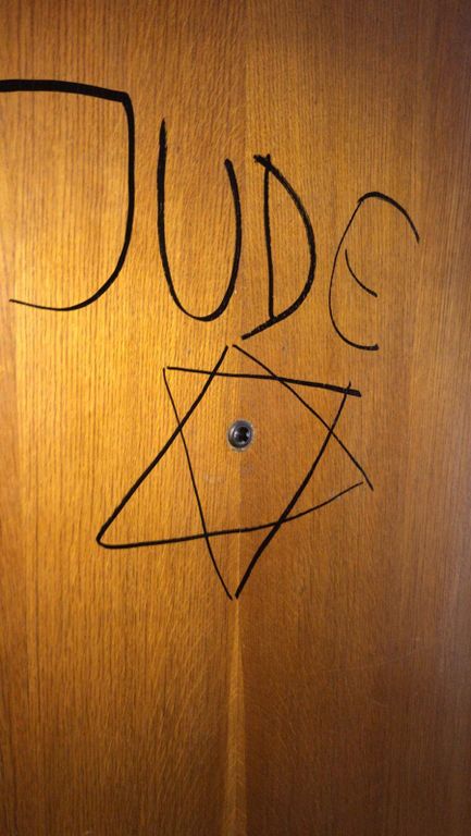 Ignoti hanno stilizzato una stella di David e scritto "Jude"