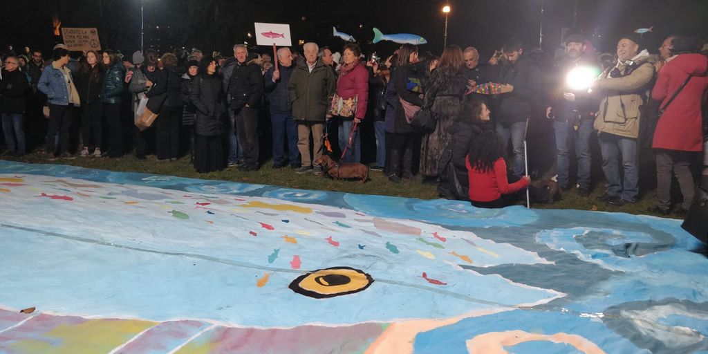 Circa un migliaio di sardine si sono ritrovate nel tardo pomeriggio al Valentino, dinanzi al noto locale "Fluido" (attualmente chiuso) per partecipare all'evento "Un bacione da Torino a Salvini", organizzato in occasione della visita in città del leader della Lega.