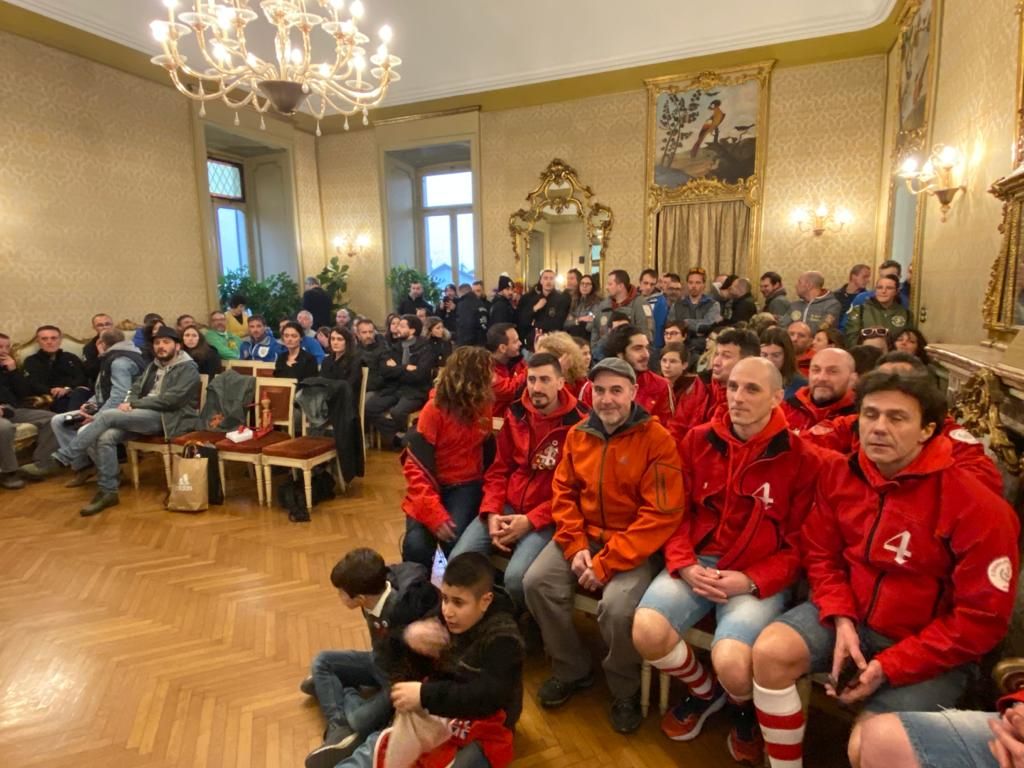 Fabio Roveyaz, 47 anni, operaio di Pont Saint Martin con una grandissima passione per tutto ciò che è grafica, immagine e illustrazione – ha pubblicato due libri – è alla sua prima esperienza di illustrazione di un carro da getto. Un mese è il tempo dedicato alla realizzazione dell’opera finita realizzata con tecnica mista, pennello e aerografo. Il bozzetto è stato realizzato a mano su un’idea condivisa col gruppo e poi dipinto con colori che richiamano quelli de I paladini di Via Palma (32 anni di tiro): verde e rosso su fondo bianco. La grafica del carro rievoca la liberazione dalla tirannide. Sulle sponde laterali vengono raffigurate l’esasperazione e la conseguente rivolta del popolo contro le guardie armate del tiranno nell’Ivrea del Medioevo. Il castello dalle rosse torri domina dall’alto la cruenta battaglia. Nella sponda posteriore la rappresentazione di Via Palma antichizzata con la raffigurazione dello stemma araldico su lapide di pietra.