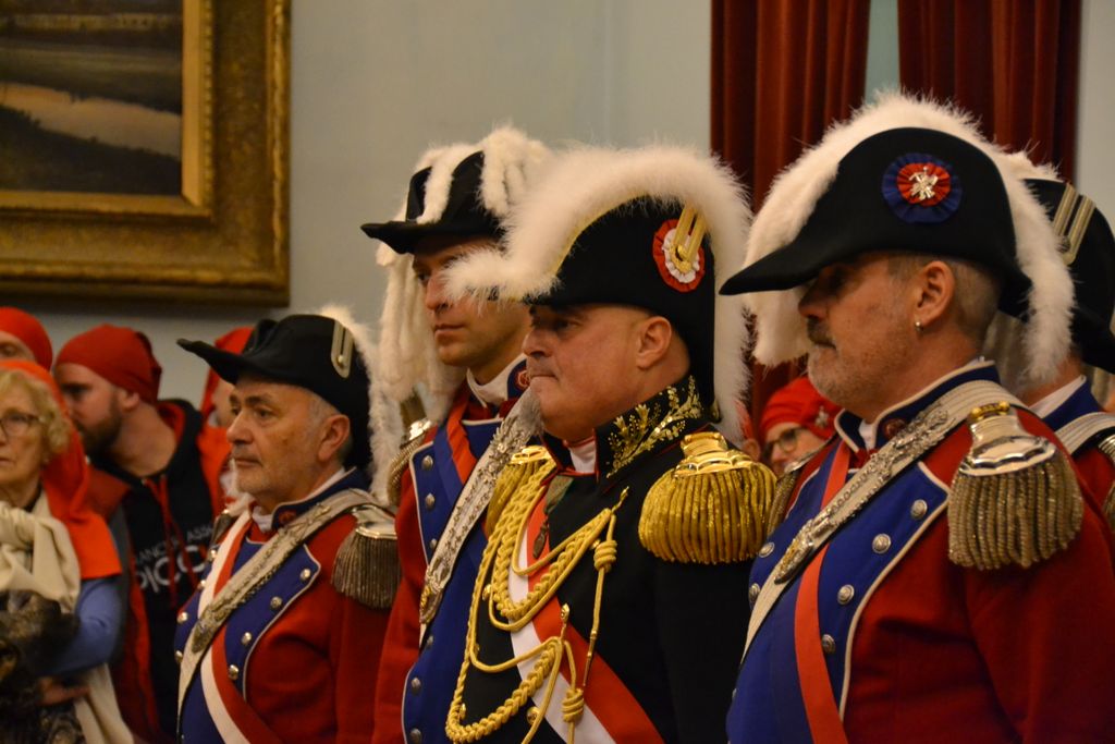 Dopo la marcia nel centro storico e la visita del Vescovo, nella sala del Consiglio comunale si è volta la cerimonia di nvestitura degli Oditori ed Intendenti Generali delle Milizie e Genti da Guerra del Canavese.