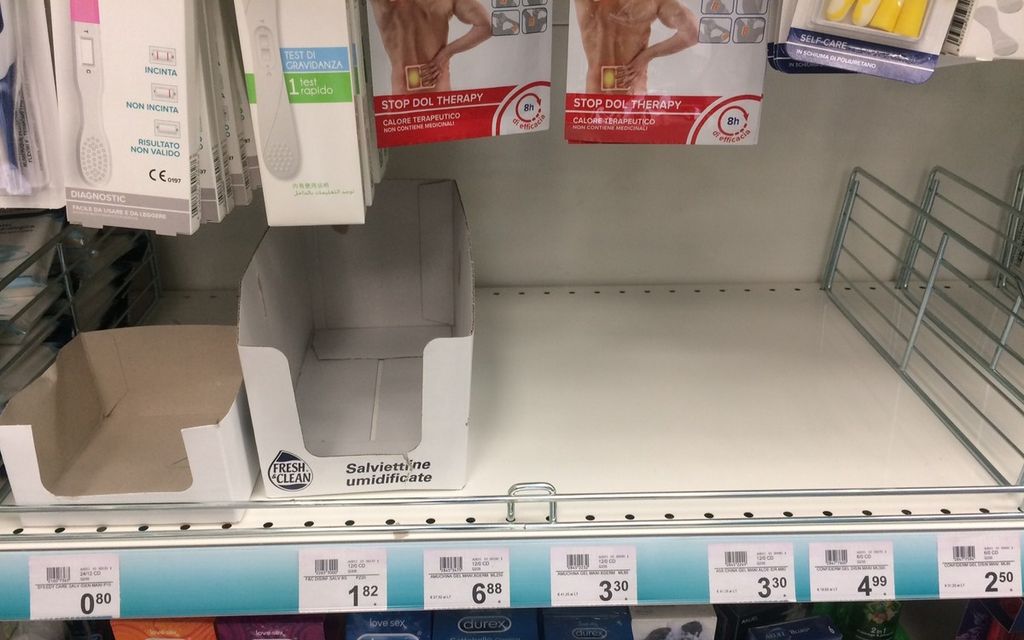 Praticamente vuoti i settori dei disinfettanti e dei prodotti alimentari a lunga conservazione