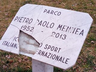 In particolare, è stata rovinata la targa onoraria dedicata al campione sportivo. Colpite anche le statue delle mascotte delle Olimpiadi Invernali Neve e Gliz. Reso inutilizzabile anche uno degli strumenti utilizzati per gli esercizi di ginnastica nell'area dedicata.