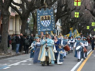 Poi l'apertura del corteo è stata affidata al numeroso gruppo degli sbandieratori di Castell'Alfero (Asti).