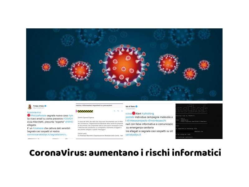 Oltre alla grave e preoccupante situazione sanitaria ed economica che sta affliggendo il nostro paese da varie settimane a causa dell’infezione del Coronavirus e come gli esperti del settore prevedevano, sono aumentati anche i rischi informatici per le aziende e utenti della rete. Un ulteriore conferma dello stretto legame che esiste tra mondo fisico e mondo cibernetico e di come i criminali abbiano capito da tempo, in caso di argomenti di particolare interesse per il pubblico, come approfittare delle paure, del panico e della solidarietà delle persone per i loro fini, danneggiandole. Recentemente è successo per il caso di “Greta Thunberg” e per quello dei gravi incendi in Australia.