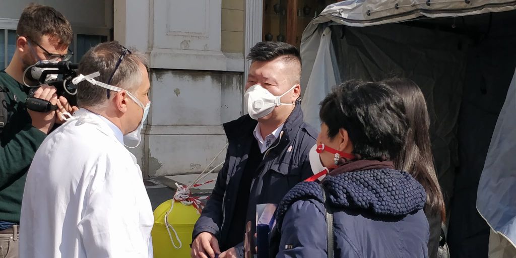 Comunità cinese dona mascherine alla Città della Salute, ma la foto di gruppo è un cattivo esempio