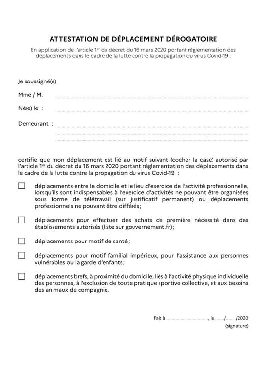 Uscire di casa, dunque, solo se necessario, muoversi il meno possibile, se si fa attività sportiva all’aperto, non deve essere in gruppo. E spunta anche l’autocertificazione (scaricabile sotto) come in Italia. "Rimanere a casa" ha detto il Presidente Macron mentre il paese entra, da mezzogiorno, in un periodo di ‘reclusione forzata’. Chi non rispetta le norme in vigore sarà punito con una multa di 38 e quindi 135 euro.