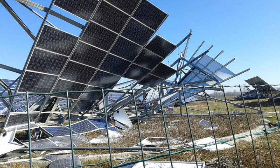 Il vento ha danneggiato due vele del parco fotovoltaico di Frossasco e non sono ancora state riparate