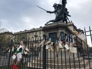 Ogni giorno di lockdown corrisponde a un pensiero gentile, rivolto agli altri o sé stessi: l’iniziativa lungo la cancellata che protegge la statua equestre di Ferdinando di Savoia