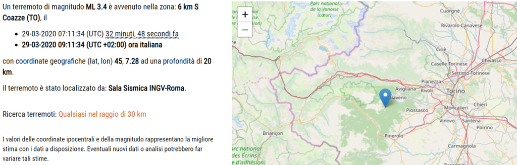 Scossa di terremoto in provincia di Torino: epicentro a Coazze