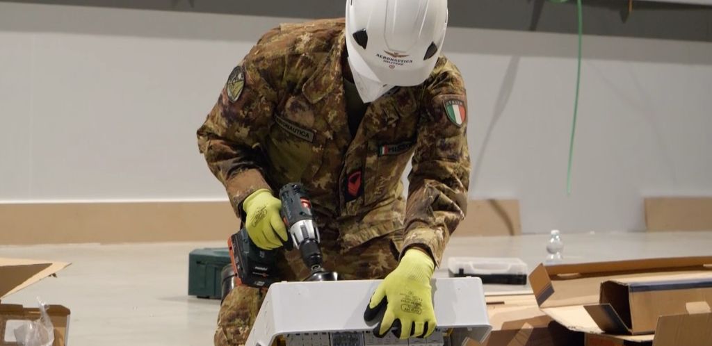 Il supporto dell’Aeronautica Militare nei lavori di allestimento dell’area sanitaria da 92 posti letto per alleggerire il carico sanitario delle terapie intensive