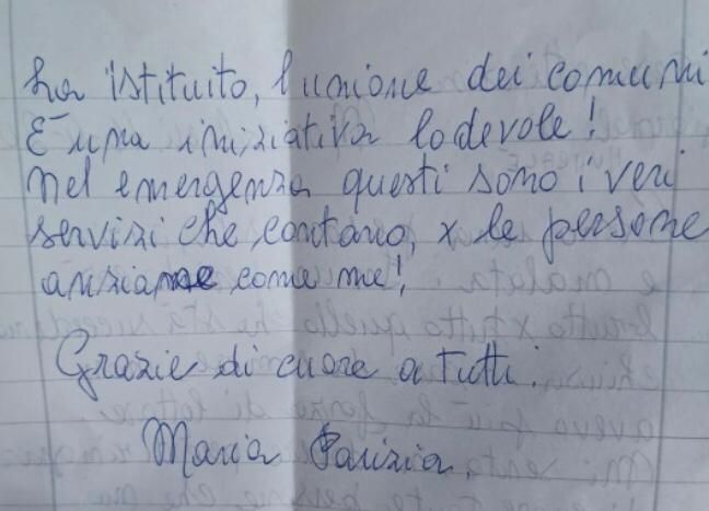 La signora Maria Patrizia ha voluto ringraziare con una lettera molto toccante le persone che l’hanno aiutata in questo momento difficile