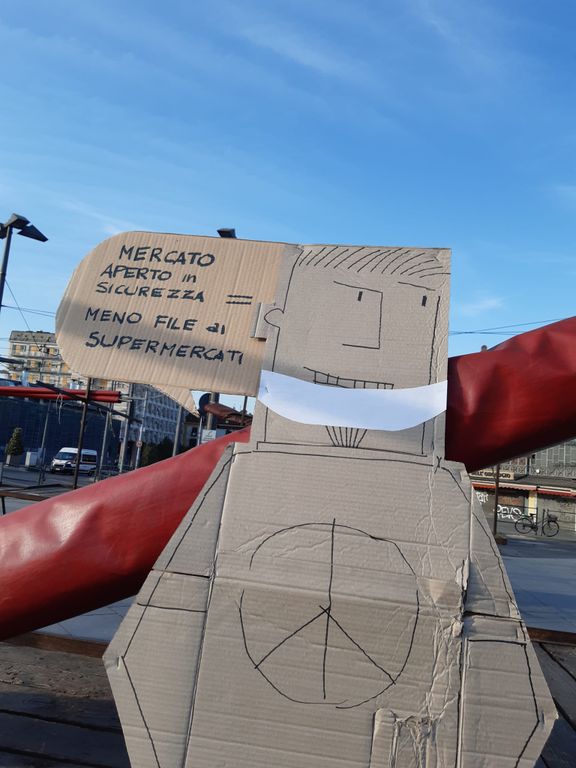 Flash mob “di cartone” in Piazza della Repubblica: “Porta Palazzo mercato solidale”