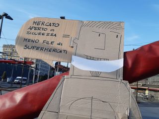 Flash mob “di cartone” in Piazza della Repubblica: “Porta Palazzo mercato solidale”