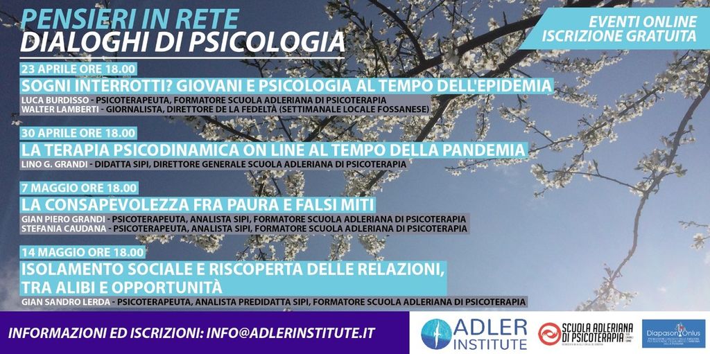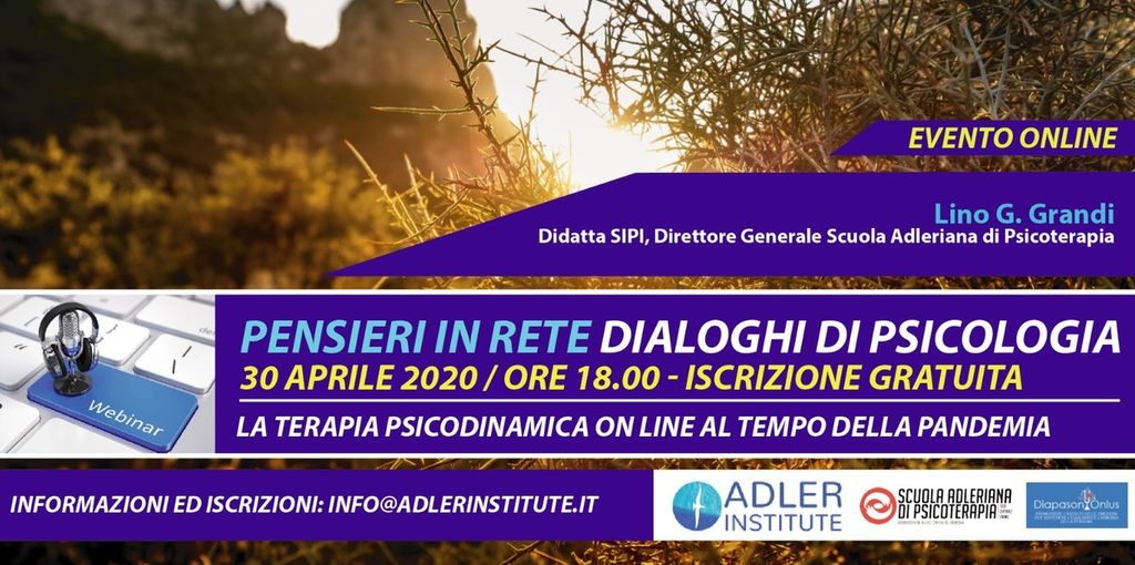 Ed è proprio di questo che abbiamo parlato con Lino Grandi, direttore Generale della Scuola Adleriana di Psicologia. Il 30 aprile, alle ore 18, Adler Institute terrà un webinar sulla “Terapia psicodinamica online al tempo della pandemia”. Un momento di riflessione gratuito e aperto a tutti. Con il professor Grandi si è voluto ragionare proprio su questo concetto: quali sono le opportunità e i limiti della tecnologia? Quali sono le più grandi paure di questo momento? E soprattutto, il terapeuta può dare loro un aiuto anche a distanza?