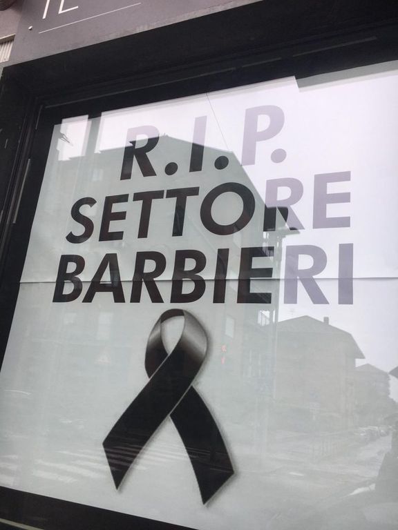 Una ventina di negozi di Nichelino, tra parrucchieri ed estetisti, ieri hanno deciso di 'celebrare il funerale' delle loro attività, esponendo una locandina listata a lutto: "Riposa in pace settore barbieri".