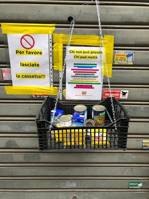 Cassetta solidale sulla serrande dell'associazione Radicale Aglietta di Torino