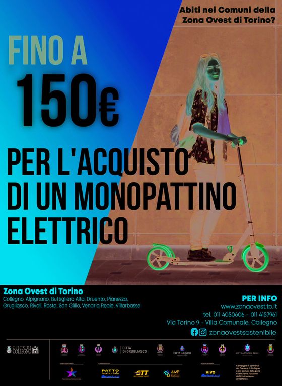 Partono da domani, martedì 12 maggio, gli incentivi per chi vuole acquistare monopattini elettrici ed è lavoratore o studente residente a Collegno e nella Zona Ovest di Torino, città escluse per una manciata di residenti dai contributi del Governo.