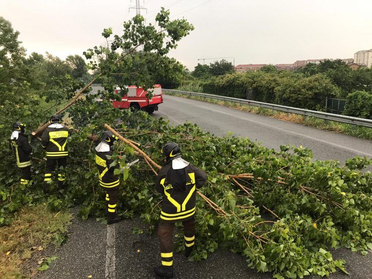 Un albero caduto sulla variante di Borgaretto, allagamenti a Tetti Piatti