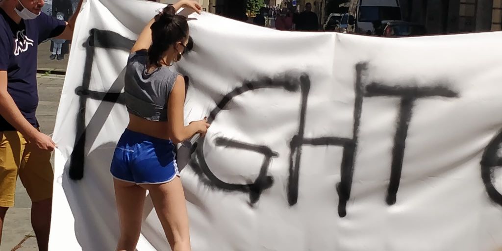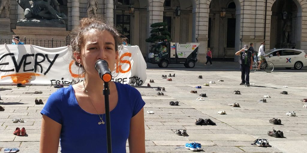 Oggi pomeriggio in piazza Palazzo di Città, in occasione della Giornata mondiale per l’Ambiente, i giovani che lottano contro il cambiamento climatico sono tornati a far sentire la loro voce, posizionando per terra delle scarpe a un metro di distanza l’una dall’altra. “Rappresentano chi oggi sarebbe sceso in piazza ma è rimasto a casa per evitare assembramenti”, dicono mentre spruzzano spray su un lungo striscione bianco. Alla fine la scritta nero-arancione “Fight every crisis”, non lascia spazio a fraintendimenti.