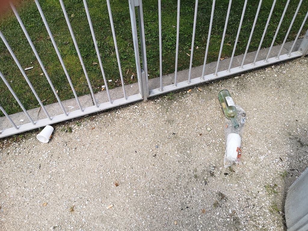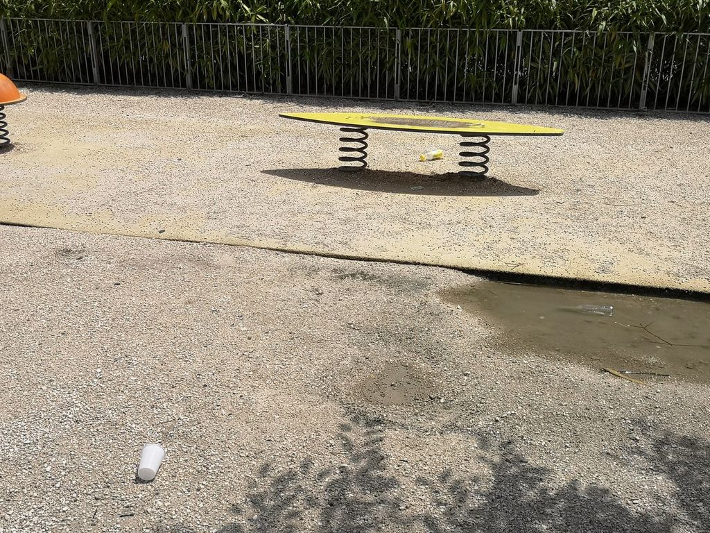 Probabilmente sono stati abbandonati lì dai ragazzi che hanno "festeggiato" ieri dopo cena l'ultimo giorno di scuola. I rifiuti lasciati su panchine e giochi, nonostante la presenza di molti cestini e cassonetti