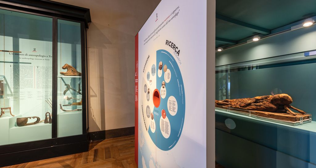 L’esposizione – realizzata in una sala resa suggestiva anche per le vetrine ottocentesche e i pavimenti in legno originali del palazzo barocco - conta altre tre sezioni, che riguardano la nascita e i contenuti dell’antropologia, la storia del Museo di Antropologia ed Etnografia dell'Università di Torino a partire dalla sua fondazione nel 1926 da parte dell’antropologo Giovanni Marro, e il contesto di scavo nel quale fu rinvenuta la mummia su cui è stato effettuato il restauro.