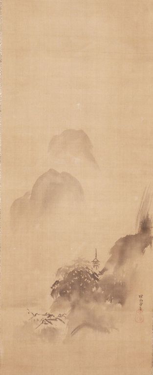 Partendo dagli scenari rarefatti di Sesson Shukei (1504-1589), dove una leggera doratura restituisce l’atmosfera soffusa della montagna avvolta in una vaporosa foschia, e dai paesaggi incorporei e astratti del famoso Kano Tan’yu (1602-1674), la selezione del MAO si concentra su diversi artisti attivi nella prima metà del 1800 tra cui spicca il poliedrico Kishi Ganku (1749 o 1756-1838), che oscilla tra l'adesione al modello sinico e i temi o le modalità pittoriche tipicamente nipponiche.