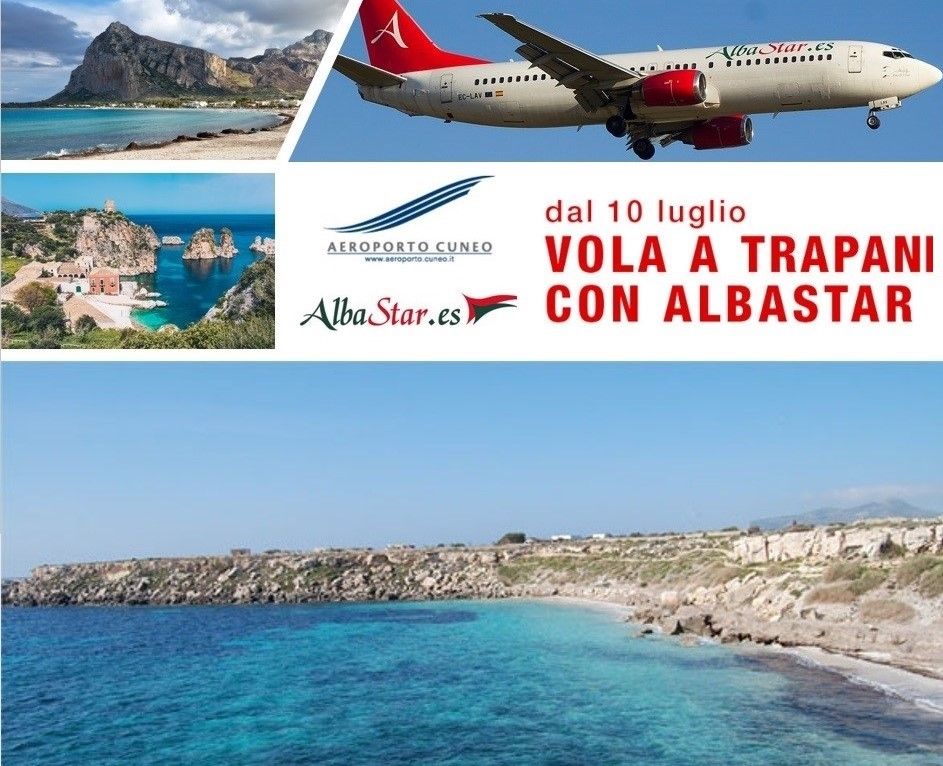 Anna Milanese, direttore dell’Aeroporto di Cuneo “Siamo soddisfatti di poter offrire al nostro territorio la possibilità di poter viaggiare con un volo diretto in Sicilia. Trapani è da sempre una delle rotte più richieste dal nostro bacino d’utenza e i passeggeri potranno viaggiare in totale sicurezza dal nostro aeroporto”. Il vettore Albastar è stato fondato dal 2009 grazie all’intraprendenza di imprenditori italiani e britannici, con l’obiettivo di offrire servizi aerei on-demand in collaborazione con i maggiori tour operator europei. Nel corso di dieci anni di attività, Albastar è diventato un punto di riferimento per il mercato italiano, offrendo un modello di business flessibile, che prevede collegamenti di linea, charter, leisure e religiosi.