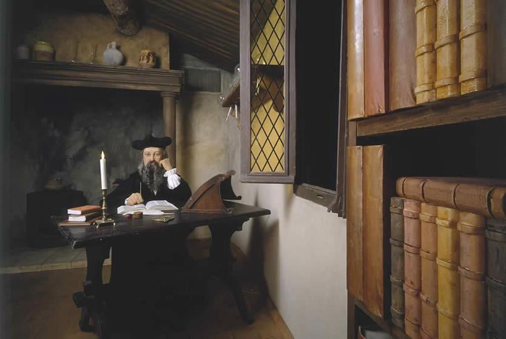 Attese seduto su una comoda poltrona. Su un tavolino un bicchiere di vino e dei piccoli dolci. “Desiderate altro?” chiese il servitore. Lui si limitò a un cenno di diniego con il capo. Troppo preso com'era da alcuni fogli che teneva sulle ginocchia e leggeva e rileggeva. Una parte delle sue Profezie, ancora in essere.