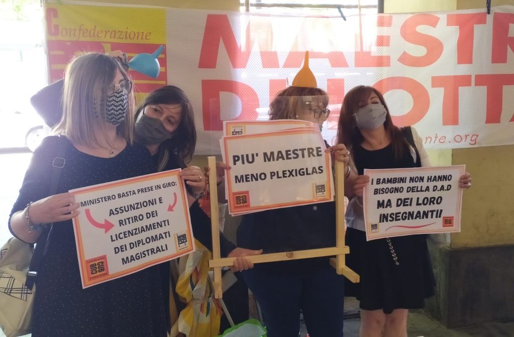 Ennesimo presidio di protesta, questa mattina, davanti all'Ufficio Scolastico Regionale. Tra le richieste, assunzioni e blocco dei licenziamenti