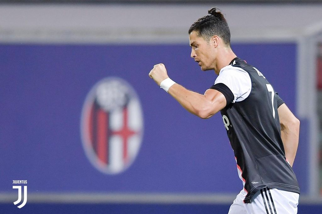 Il primo squillo della partita è bianconero ed è targato Cristiano Ronaldo: dopo sei minuti il portoghese, partendo dal centro sinistra, impegna Skorupski con destro che il portiere falsineo, non potendolo bloccare, è costretto a respingere. Al 23’ l’episodio che sblocca la partita: sugli sviluppi di un calcio d’angolo, Denswil tira la maglia a De Ligt che cade in area di rigore. Rocchi, richiamato dal Var, decreta il penalty che Ronaldo realizza spiazzando l’estremo difensore del Bologna. Per Cr7 esultanza classica, in un Dall’Ara vuoto il cui silenzio è spezzato solamente dal suo “Siuuu”. La squadra di casa accenna una timida reazione, ma al 36esimo deve piegarsi alla classe del numero 10 bianconero, Paulo Dybala: imbeccato da un delizioso colpo di tacco di Bernardeschi, la Joya si ritrova la palla a 20 metri della porta, in una zona perfetta per far partire il mancino a giro sul secondo palo che trafigge Skorupski. Un gol di qualità, che vale il 2-0 con cui la Juve chiude la prima frazione di gara. Buon primo tempo dei bianconeri, sempre in controllo. Mai impegnato Szczesny, in grado però di crearsi i problemi da solo a causa di disimpegni con i piedi piuttosto difficoltosi.