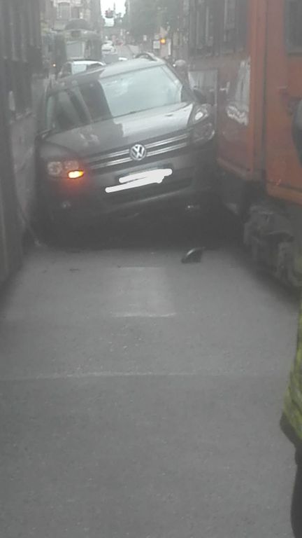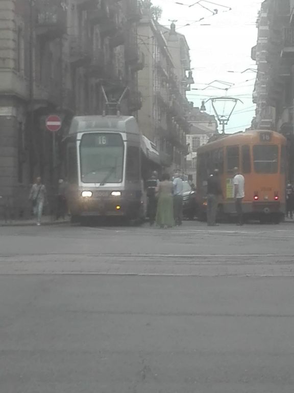 Auto incastrata tra due tram: circolazione bloccata in centro Torino