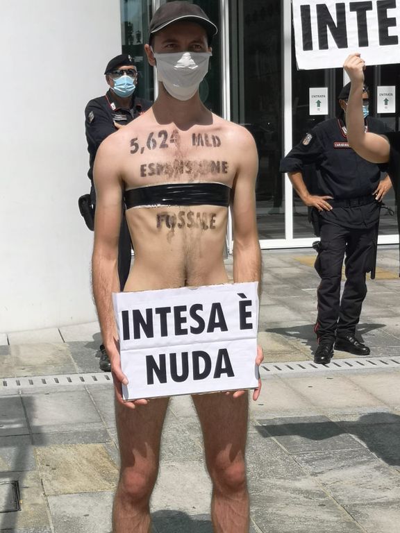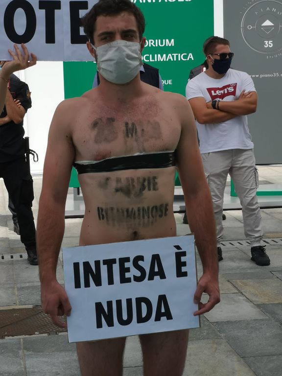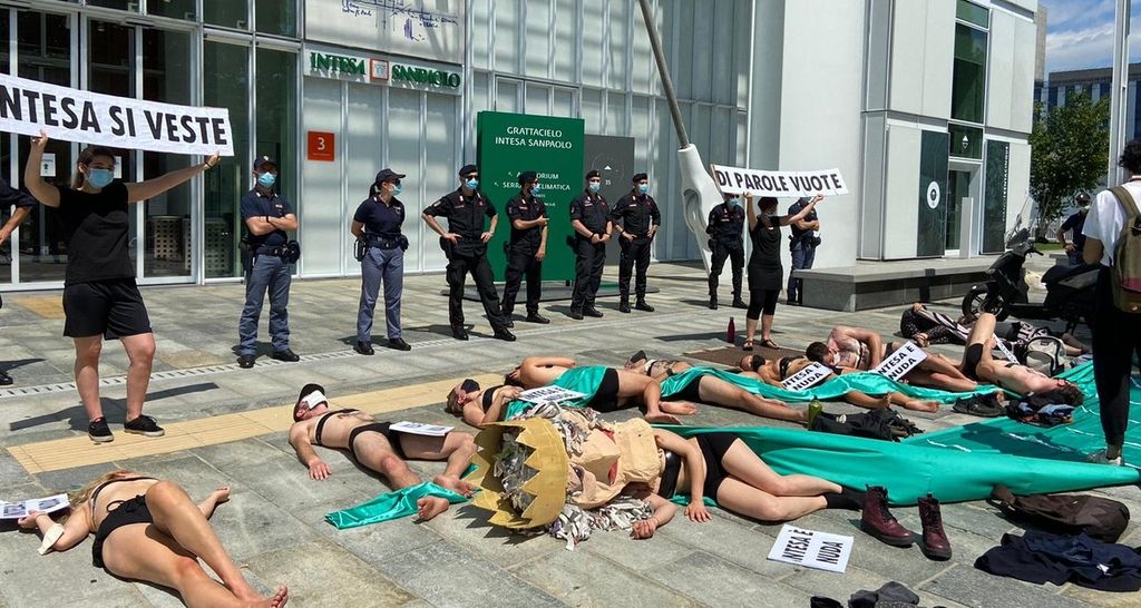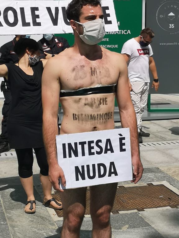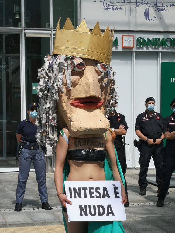 Un flash mob per opporsi al riavvio dell'economia globale a spese degli ecosistemi planetari. Si tratta di un'azione che segue quelle inscenate lo scorso 11 giugno sempre sotto la sede del Sanpaolo