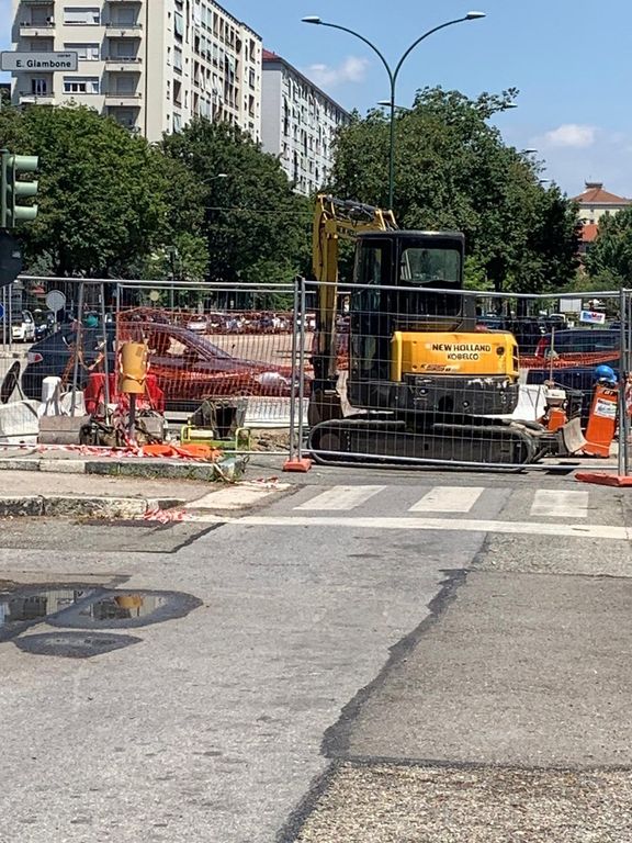 Ci sono volute due settimane, ma ora i lavori di ripristino della buca che si era creata in corso Giambone, all'angolo con corso Corsica e a poca distanza dall'ingresso del sottopasso del Lingotto, sono finalmente partiti.