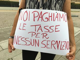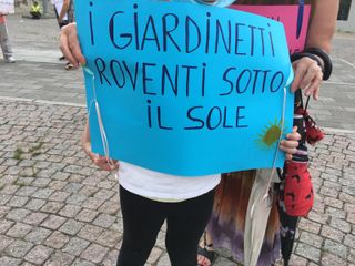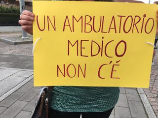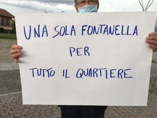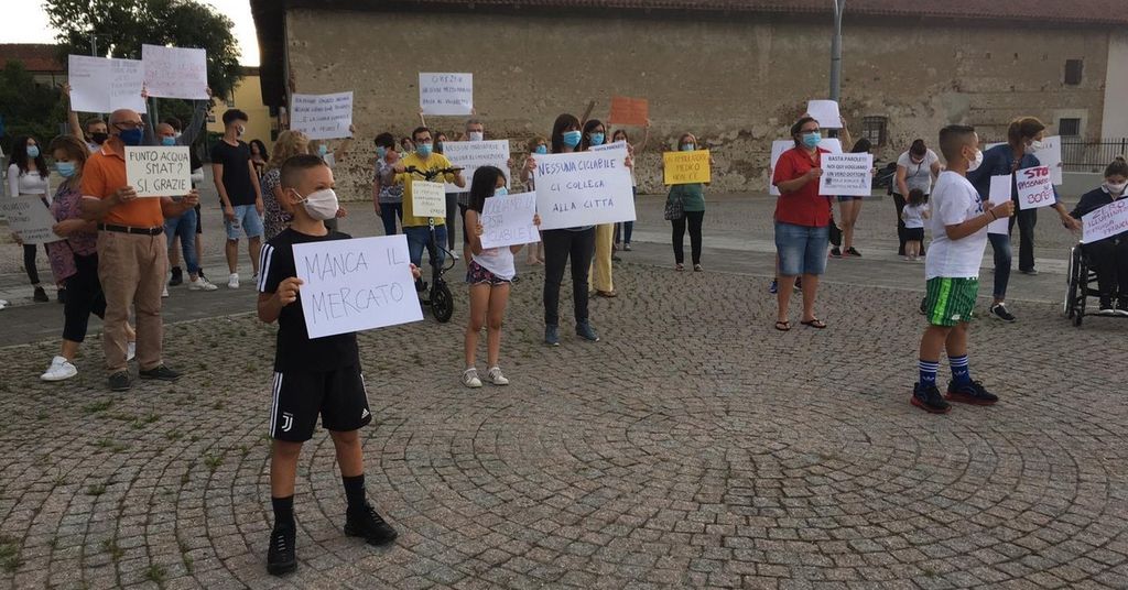 Flash mob di protesta, ieri pomeriggio, in Piazza Puglisi. I residenti lamentano la mancanza di servizi come negozi, ambulatori medici, centri di aggregazione e piste ciclabili
