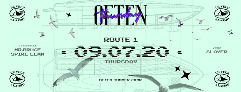9th July 2020 Thursday Night LE VELE ALASSIO presents OFTEN Music by Mr. Bruce / Spike Lean feat. Slayer