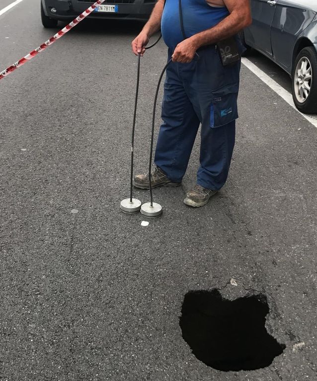 Il terreno friabile avrebbe potuto cedere ulteriomente, creando una crepa molto più grande. Notevoli i disagi alla circolazione: necessarie due pattuglie della municipale per regolare il traffico e tenere lontani i curiosi