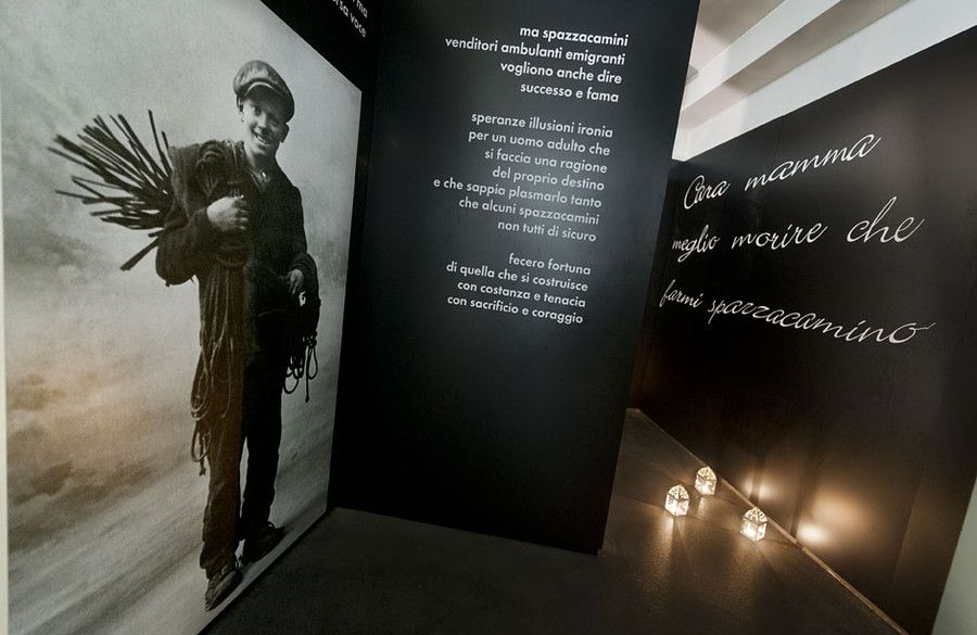 Al primo piano, il Museo dello Spazzacamino offre un percorso multisensoriale dal taglio fortemente emotivo: il visitatore entra in una canna fumaria orizzontale, ascolta il rumore del riccio e della raspa, rivive la malinconica miseria dei piccoli spazzacamini, infila la testa all’interno di un camino e infine, come esperienza di contrasto, è coinvolto nell’epopea delle famiglie vigezzine che, praticando questo mestiere, hanno raggiunto la ricchezza. Un percorso fortemente emozionale, che affascina grandi e piccini e che fa riflettere, rendendo la visita al Museo dello Spazzacamino un’esperienza unica.