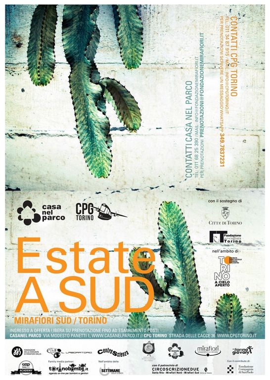 Per prenotazioni a tutti gli eventi di ESTATE A SUD alla Casa nel Parco (Via Modesto Panetti 1) scrivere una mail a prenotazioni@fondazionemirafiori.it