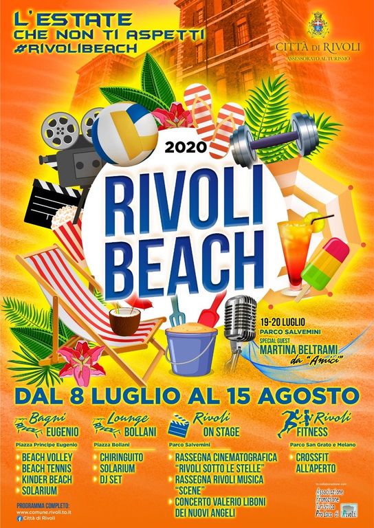Nel tardo pomeriggio gli amanti dell’aperitivo si sono trasferiti in piazza Bollani nel suggestivo anfiteatro sotto il Castello di Rivoli in un’area relax ai piedi di una storica scalinata messa a nuovo per l’evento. Rivoli Beach nato da un’idea della società di eventi So Simple, è organizzato dalla Proloco di Rivoli in collaborazione con l’Assessorato al Turismo della città e beneficia di un’importante contributo economico dei partner dell’evento: Natura Urbana Green Tower, Gaudenti, O’neill, Kinderdental, Gimax, Assiexpert, Cultraro, Vema Immobiliare, Molecola, Sammontana, Decathlon, Tomato Pizza, Edil Service Rosta, Telecontrol, Ideazione, Maschio Latino. Vivai Ducco.