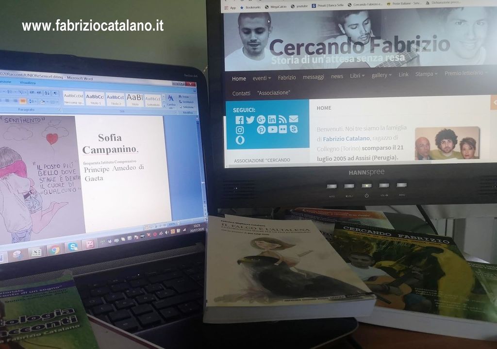 Quante iniziative per non far scomparire Fabrizio e sensibilizzare sul fenomeno della scomparsa", aggiunge il padre, che prosegue. "Da allora non ho mai perso la speranza e per ricordare Fabrizio ho pubblicato il mio secondo libro “Il falco e l’altalena- La storia di una madre per un figlio scomparso”, la mia dichiarazione d'amore, costituito un'associazione Cercando Fabrizio e... e ideato il concorso letterario che anno dopo anno ha ottenuto sempre più visibilità anche grazie alla partecipazione di migliaia di persone da tutt’Italia .“Caro Fabrizio ti racconto di un amore“ è il titolo della sesta edizione.