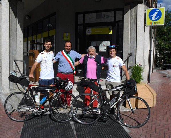 I due ciclisti, che hanno raggiunto Bardonecchia sabato in treno, con al seguito le loro biciclette attrezzate per le lunghe percorrenze, sono stati accolti all’Ufficio del Turismo dagli assessori comunali, Giuliano Franzini, Programmazione economica, tributi, programmazione urbanistica ed edilizia e Mario Gho, Lavori Pubblici, patrimonio, viabilità, parcheggi e servizi cimiteriali che hanno fatto gli onori di casa, esteso i saluti e i complimenti del sindaco Francesco Avato, assente per inderogabili impegni istituzionali, di tutti gli amministratori e della cittadinanza per la loro impegnativa pedalata benefica.