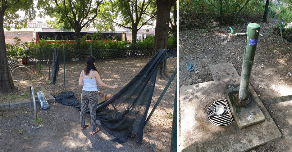 Un’azione quotidiana per i due proprietari del cane, che da tempo avevano notato come l’area predisposta per lo svago del loro animale fosse un po’ abbandonata, malconcia. Da qui l’idea di prendersi cura in prima persona della cosa pubblica: Vittorio e Valentina, armati di buona volontà, iniziano a sostituire il telo oscurante, comprano una ciotola da legare alla fontanella con una catenina. Ad aiutarli uno degli altri padroni e i gestori del chiosco di fronte, che hanno regalato loro un paio di guanti per non sporcarsi durante i lavori.