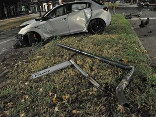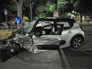 Le vetture hanno colpito lo spartitraffico a causa dell'impatto. Il comandante dei vigili: "Da mesi registriamo comportamenti poco responsabili e velocità assurde per un contesto urbano"