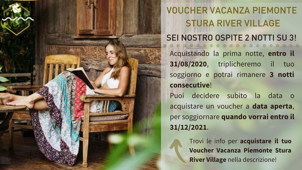 Sono disponibili 3 tipologie di Voucher per soggiornare allo Stura River Village: