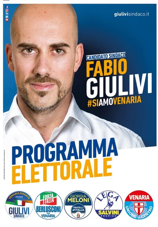 Da inizio settimana è on line, sul sito internet www.giulivisindaco.it, il programma elettorale di Fabio Giulivi, candidato sindaco del centrodestra per il comune di Venaria.