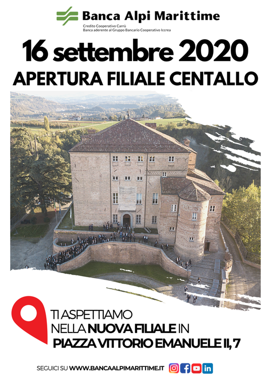 Aprirà mercoledì 16 settembre, a Centallo, la 22° filiale di Banca Alpi Marittime, l’Istituto di Credito Cooperativo con sede a Carrù, oggi parte del Gruppo Bancario Cooperativo Iccrea.